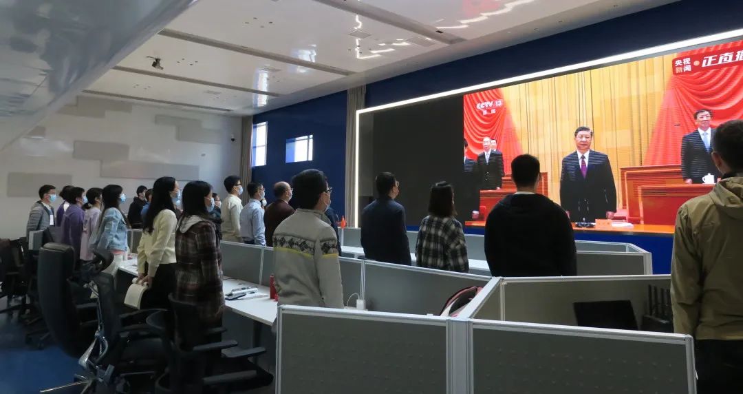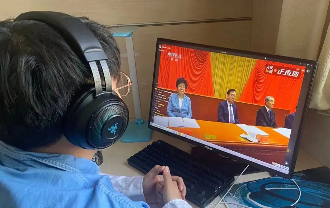 在校师生和学校网络中心教职工在中国体育大数据中心集中观看央视直播,居家师生积极线上观看大会盛况,全体师生共同学习会议精神。